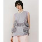 tシャツ ボリュームフリルチュールデザインカットタンク レディース