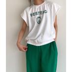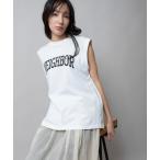 tシャツ スリーブレスロゴプリントTシャツ レディース