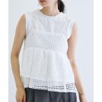 tシャツ バックカットジャカード ノースリーブトップス レディース