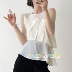 カットソー ノースリーブ トップス 春 夏 ノースリーブ シャツ 白 無地 シンプル カジュアル ラウンドネック フリル タンクトップ 韓国ファッション