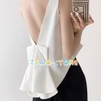 バックオープン トップス カットソー ノースリーブ トップス 春 夏 ノースリーブ シャツ 白 黒 無地 シンプル セクシー 韓国ファッション