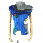 PLEATS PLEASE ISSEY MIYAKE◆ノースリーブカットソー/3/ポリエステル/BLU/アニマル/PP94-JK531