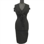06A シャネル CHANEL ココマーク シースルー ワンピース ドレス カットソー 切替 レース ストレッチ ノースリーブ 34 ブラック レディース
