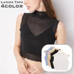 レディース ノースリーブ タンクトップ ハイネック Tシャツ シアートップス シアー カジュアル カットソー メッシュ 袖なし インナー レイヤード