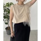 tシャツ 肩タックノースリーブボートネックTシャツ レディース