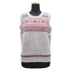 美品 jamieson's ジャミーソンズ ウール 総柄 ニット ベスト カットソー ノースリーブ スコットランド製 グレー レディース 古着 中古