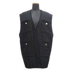 新品同様 PARIGOT パリゴ マレスカ スラブ ツイード ベスト カットソー ノースリーブ 金ボタン サイズF 黒 ブラック レディース 古着 中古