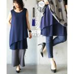 トップス カットソー レディース ネイビー ノースリーブ ロング ゆったり 体型カバー 大人の味方 レイヤードタンク OTONAオリジナル 40代 50代 60代