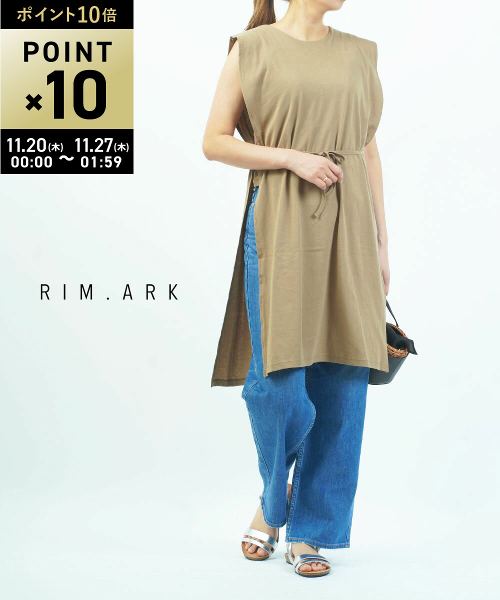 【11/20限定10%クーポン】リムアーク RIM.ARK カットソー ノースリーブ ロング Tシャツ ロング丈 チュニック ワンピース サイドスリット 体型カバー・460DSL80-0140-4202001(レディース)