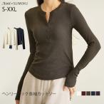 スイモク ヘンリーネック カットソー Tシャツ レディース トップス リブ デイリー 長袖 肌触りの良い素材 大きいサイズ きれいめ 春 秋 冬