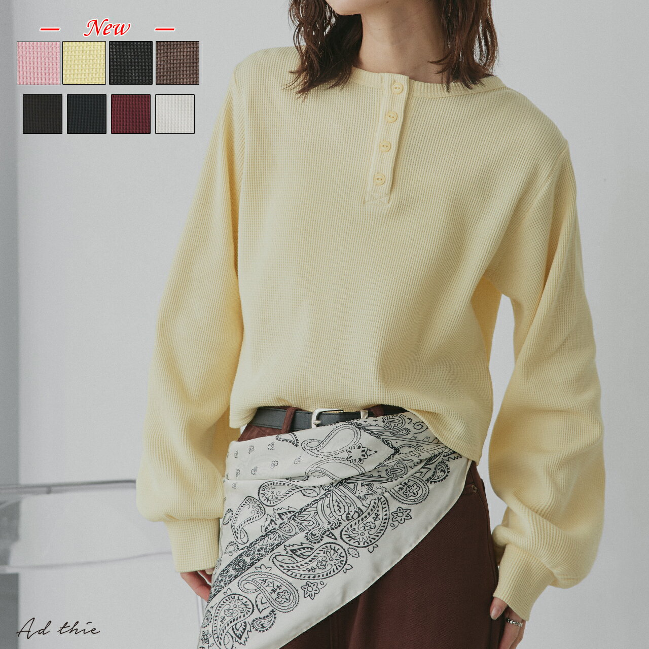 tシャツ 「WEB限定」「at ease」ワッフル ヘンリーネック ロングスリーブ カットソー レディース