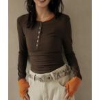 tシャツ テレコリブヘンリーネック長袖Tシャツ レディース
