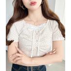 tシャツ レース付ヘンリーネックカットソー レディース