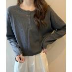 tシャツ 秋に使える着回し自在。ゆるシルエット秋服ヘンリーネックサーマルカットソー レディース