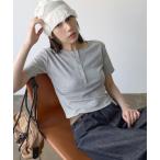 tシャツ 「UNE ORIGINAL」 ヘンリーネックシルバースナップボタンリブ半袖カットソー レディース