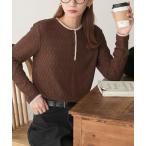 tシャツ 「WEB限定」ヘンリーネックレース付プレートロゴリブ長袖トップス レディース