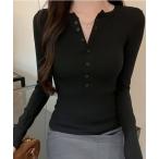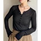 tシャツ シアーリブヘンリーネックロンTee レディース