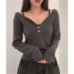 tシャツ ボーダー柄 ヘンリーネックトップス レディース