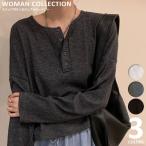 tシャツ ヘンリーネックスラブリブ長袖シアートップス レディース