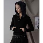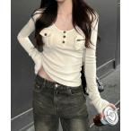 tシャツ Y2K スナップボタン フロントポケットデザイン リブニットヘンリーネックトップス レディース