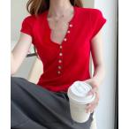 tシャツ ボタンデザイン ヘンリーネック コンパクト 半袖 カットソー レディース