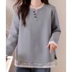tシャツ レース切替×ヘンリーネックトップス レディース