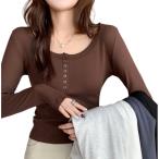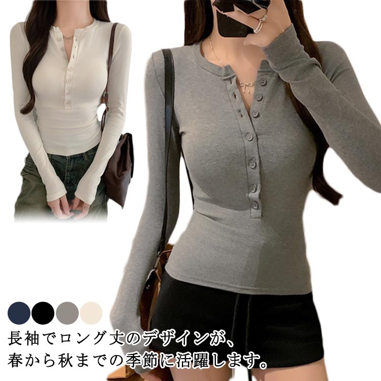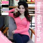 長袖tシャツ レディース 薄手 カットソー ヘンリーネック ロンT 春服 長袖カットソー おしゃれ かわいい シンプル タイト 無地 ボタン ストレッ