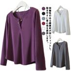 tシャツ ソリッドカラー ヘンリーネック コンパクト 長袖 カットソー レディース