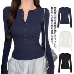 tシャツ 長袖 レディース ヘンリーネック カットソー リブニット 春 秋 冬 トップス ロンt タイト スリム ボタン プルオーバー