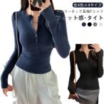 リブニット 長袖Tシャツ レディース ヘンリーネック タイト 無地 伸縮 ストレッチ インナー 長袖 Tシャツ tシャツ 春 秋 体型カバー 細見え トップス 授乳対応 前ボタン カットソー おしゃれ カジュアル 大人可愛い 送料無料 M~XL