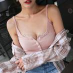 キャミソール リブ トップス レディースノースリーブ トップス ヘンリーネック ボタン 胸元 セクシー カットソー 無地 大人 セクシー ニットベスト おしゃれ