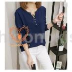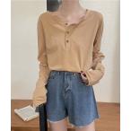 Tシャツ 長袖 レディース ロンT カットソー トップス リブ ボタン ヘンリーネック シンプル 大人 韓国ファッション 【メール便】 [M便 1/1]