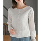 【OMNES】リブワイドスリーブ ヘンリーネック長袖プルオーバー レディース カジュアル フリーサイズ クルーネック カットソー リブニット 無地 ボーダー ボタン HAPTIC ハプティック