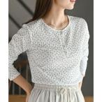 tシャツ カップ付き花柄ヘンリーネック ロングスリーブカットソー レディース