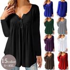 カットソー チュニック 長袖 ヘンリーネック レディース トップス 大きいサイズ タック ラウンドカット おしゃれ きれいめ 上品 カジュアル シンプ