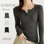 Tシャツ レディース ヘンリーネック カットソー トップス リブ デイリー 長袖 肌触りの良い素材 【水沐良品】【スイモク】