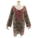GRACE CONTINENTAL カットソー チュニック丈 ヘンリーネック 刺繍 長袖 フレアスリーブ シルク100% 総柄 ベージュ マルチカラー 36