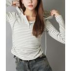 tシャツ 長袖ボーダーカットソー/ヘンリーネック/フーディー レディース