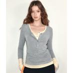 tシャツ Layered Henley Neck Tops/レイヤードヘンリーネックトップス レディース