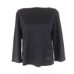 極美品★HERMES エルメス コットン100% ポケット刺繍デザイン ボートネック 七分袖 カットソー ブラック 34 フランス製 レディース