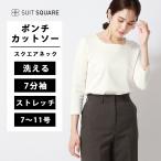 レディース スクエアネックカットソー 7分袖 七分袖 ウォッシャブル 無地 白 ホワイト系 ストレッチ 洗える オフィスカジュアル ビジネス 一枚で決まる トップス