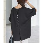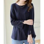 tシャツ 8分袖パール調ボタンTシャツ レディース
