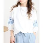 tシャツ 刺繍スリーブ7分袖プルオーバー (アガパンサス) レディース