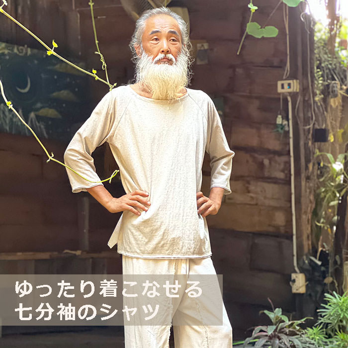 パヤカ asana ヘンプコットン 厚手 七分袖 ラグラン Tシャツ<きなり>半袖 カットソー エスニック アジアンファッション メンズ リゾートコーデ