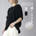 カットソー レディース 半袖 綿 白 黒 体型カバー コットン トップス ワッフル ドルマン 春 夏 60代 50代 40代 30代 20代 ゆったり シンプル 無地 おしゃれ