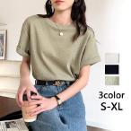カットソー 半袖 レディース きれいめ 通販 tシャツ シャツ パフスリーブtシャツ トップス 無地 ゆったり 袖コンシャス パワショル パワーショルダー カットソー