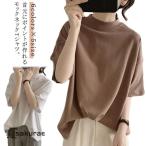 カットソー 綿 Tシャツ 半袖 プチハイネック ゆったり レディース tシャツ 夏 ドロップショルダー トップス ハイネック 女性 モックネック 大