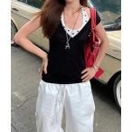 tシャツ 「 MEMECLE / メメクル 」 ドット柄 タンクトップレイヤード カットソー 半袖 レディース