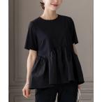 カットソー 半袖 レディース 接触冷感 Tシャツ 五分袖 配色 ドレープ シフォン生地 ひんやり 異素材 ドルマン トップス「メール便可」「10」