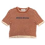 ミュウミュウ miumiu 美品 23年 コットンブークレ ボーダー セーター ニット カットソー 半袖 MML707 国内正規 茶 ブラウン 36 ■MNK2